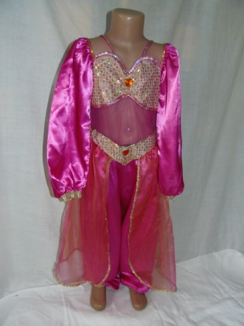 Красивый блестящий розовый костюм Восточной Красавицы Принцессы Жасмин на рост 98-110 см, 3-5 лет. В комплекте туника, шаровары, головной убор в ассортименте.