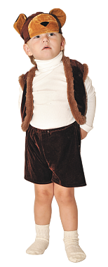 Велюровый карнавальный костюм Мишки для ребенка на рост 86-104 см, 2-4 года. В комплекте шорты, жилет и голова Мишки. Очень удобный и симпатичный костюм для вашего ребенка!