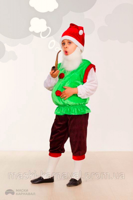 Карнавльный костюм Гномика, Эльфа или Помощника Санты детский, на ваше усмотрение с бородой на рост 104-122 см. В комплекте шапка с бородой, туника, бриджи велюр черные, коричневые кожаные ботинки