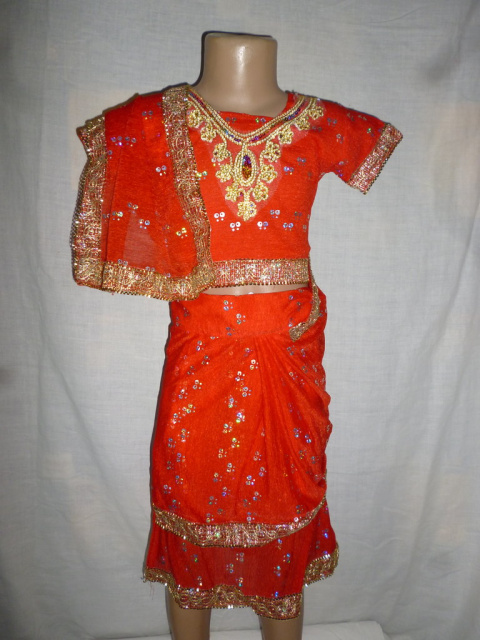 Шикарный восточный индийский костюм Сари для девочки 4-6 лет на рост 104-116 см. В комплекте топ, юбка и накидка. Яркий и неповторимый образ!