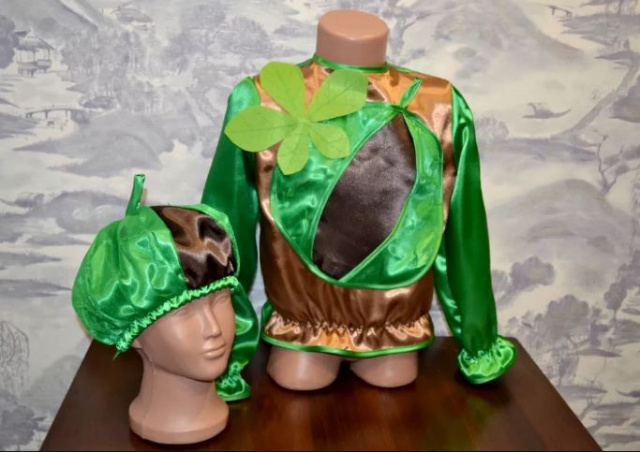 Шикарный карнавальный костюм Каштан на праздник Урожая или фотосессии. В костюм входят блузон, бриджи-штаны и головной убор. На рост 98-116 см, 3-6 лет. Авторский атласный маскарадный костюм Каштана, пошит на заказ.